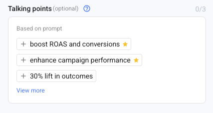 Ratings – Each talking point may show a 1–3-star rating, indicating how strongly it may resonate with your audience.